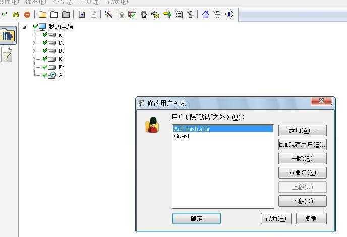 接着,如果是多用户计算机,你可以点开“修改用户列表”,“添加现有用户”,这样可以对用户进行文件夹访问控制。如果只是单用户或不愿做多用户设置,可以不配置,这样就只对默认账户生效。