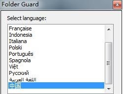 开始安装FolderGuard之前,我们要先选择安装FolderGuard时候使用的语言。点击中国,然后点击OK;