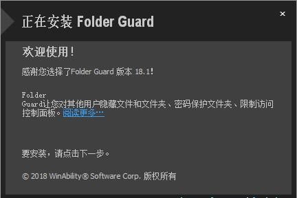 FolderGuard已经准备好安装了。点击就可以开始将FolderGuard安装到电脑中了;