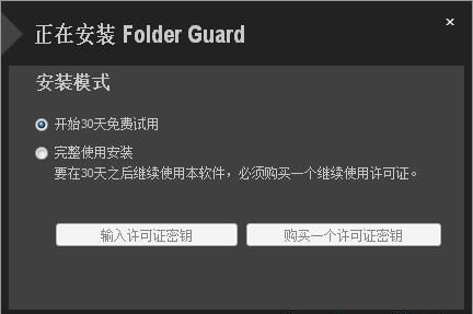 安装程序询问我们是否需要使用完整版FolderGuard。小编选择了使用30天免费试用版的FolderGuard。点击下一步继续安装进程;