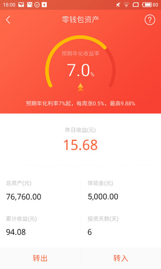 荷包金融是一个提供荷包理财、荷包贷款的平台,新手注册还享受5000元体验金,当然其app可以正常打开使用,官网是备案可查的,在这上面投资的人也不少,零钱包最高10.88%,随存随取,更有项目最高至15.68%。千万级风险准备金保障,每天都能拿到收益,还是比较可靠的噢,小伙伴们使用前要了解清楚各种情况。