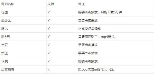 BBm3u8视频嗅探下载合并工具支持网站符号说明:(√支持×不支持—待定)