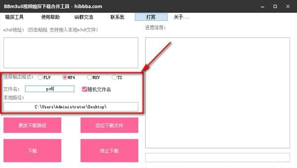 2、选择输出格式、文件名、本地路径;