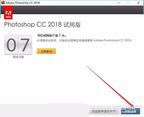 安装完毕后会出现如图,提示7天试用,点击开始试用。确认能够打开软件。