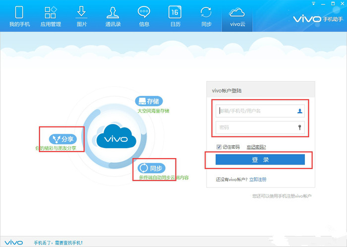 2、登录vivo云,然后就可以使用同步 分享等功能了。