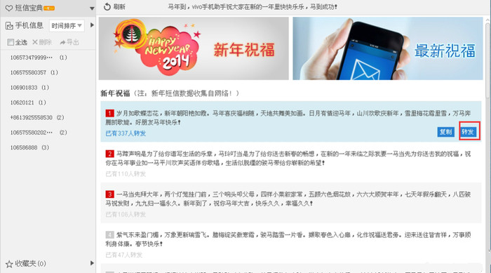 2、在短信界面找你想转发的消息,点击转发输入手机号就行了!
