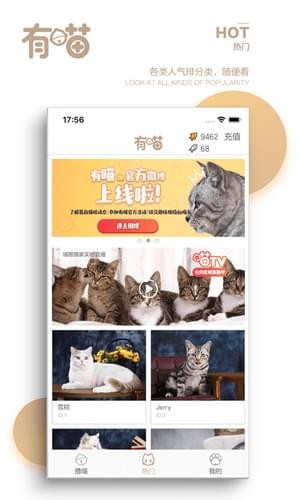有喵app是一款可以让用户通过网络进行云养猫的手机软件。有喵app可以实现每个心中想养只猫的愿望,用户可以在有喵app进行认养猫咪,并通过视频等形式和猫咪进行互动。有喵app内也提供多种多样的玩具、衣服、零食等等和猫咪有关的用品,有喵app可以让用户做一个完全合格的“猫奴”。