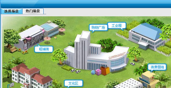 A)购物广场设置有导航牌,用户可以通过点击导航牌快速切换场景,比如零售户点击导航牌的【卷烟超市】,即可直接进入【卷烟超市】;