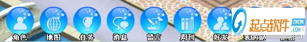 B)屏幕下方设置有快捷菜单,由角色、地图、背包、任务、消息、留言、周刊、好友、我的家、退出等快捷功能组成,点击相应按钮即可快速跳转到相应功能。