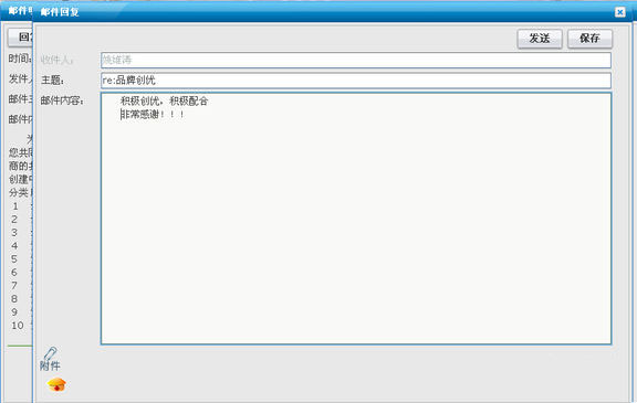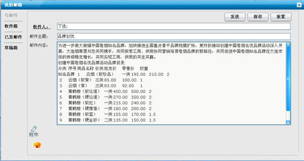B、输入邮件主题和邮件内容,如果有附件可以添加附件,完成后点击“发送”即可。邮件内容不允许超过1000字,附件大小不允许超过1M。