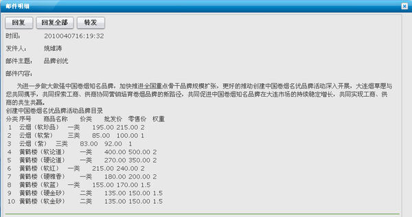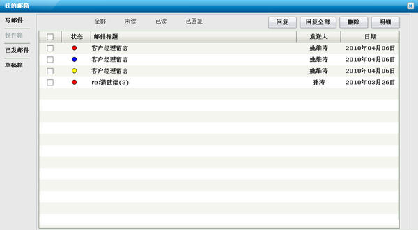 点击邮件标题,可以查看邮件明细,点击左上方“回复”、“回复全部”、“转发”可跳转到相应功能。