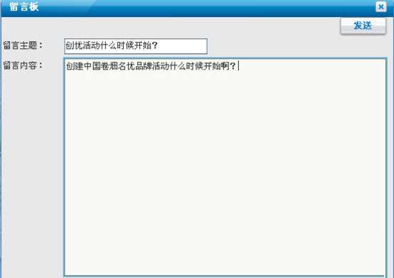 留言:点击进入留言界面,零售用户可以向烟草公司留言。直接录入留言主题和留言内容即可。