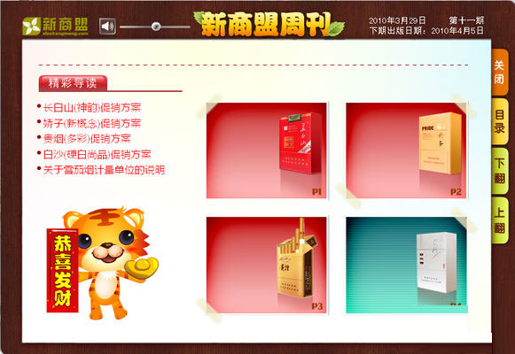 “新商盟”是面向零售客户的平台,实行会员制,以网上订货为核心功能,有效促进了行业商业企业经营模式的转变,进一步提升了商业企业客户服务水平和品牌培育水平。建设零售客户自助、自乐、互动、互乐的网上家园,由以下几大区域组成:该网站运用虚拟描述的手段,展现了现实世界的场景,整个平台很像“开心网络”。用户可以通过对场景和栏目的走访与体验,与系统中的各种道具进行在线或离线交互,从而实现卷烟交易等各种功能,并提供各种与商业企业、工业企业的互动模块。