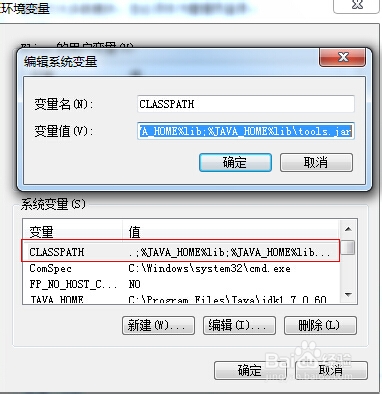 变量值:.;%JAVA_HOME%lib;%JAVA_HOME%lib\tools.jar;