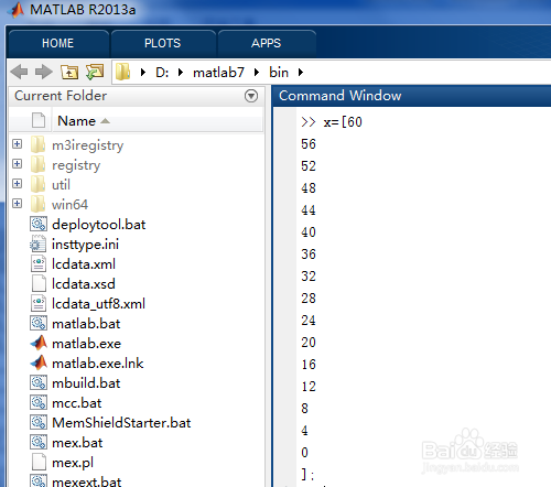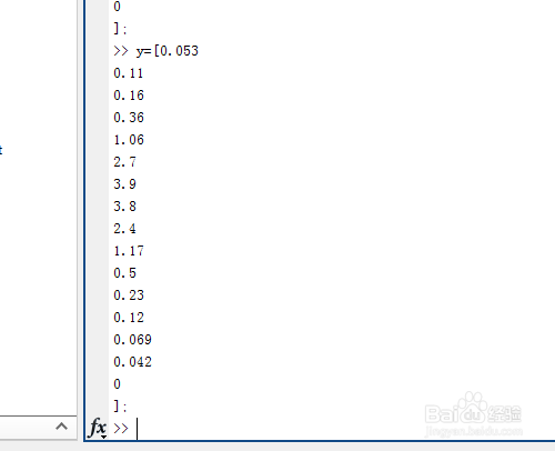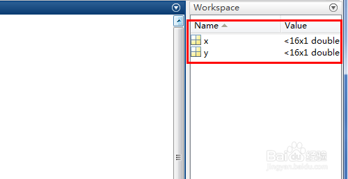 1、运行Matlab软件。在工作空间中存入变量的实验数据。具体如下:可以直接用矩阵来存放数据,直接在命令窗口输入