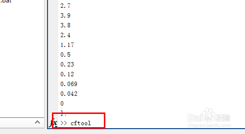 2、把数据存入工作空间后,在命令窗口中输入cftool,回车运行。