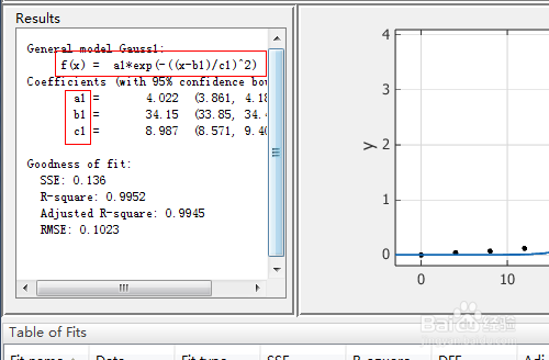 4、选择拟合的曲线类型,一般是线性拟合,高斯曲线,平滑曲线等,根据需要选择。选择完后会自动完成拟合,并且给出拟合函数表达式。