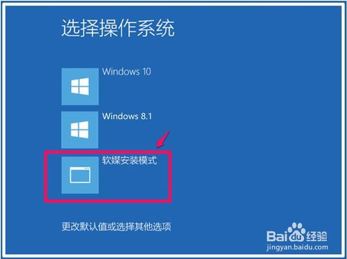 第三步:电脑重启后,进入选择操作系统界面,现在我们是用软媒魔方硬盘装机安装Windows10系统,所以点击:软媒安装模式;