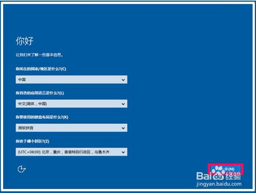 了解基本信息:系统会根据我们所在的区域,给出具体信息,校对后点击:下一步;