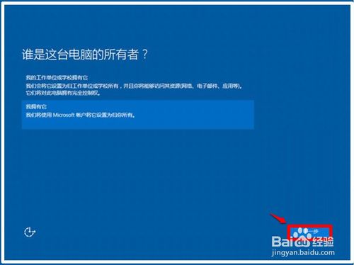 谁是这台电脑的所有者:一般选择【我拥有它】,再点击:下一步;