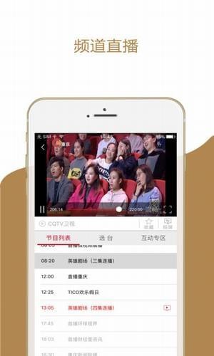 1.卫视直播:重庆各大电视频道的视频直播,手机同步观看电视直播;2.视频点播:海量内容随你想看就看,电影,电视剧,动漫,微视频,地区新闻应有尽有;