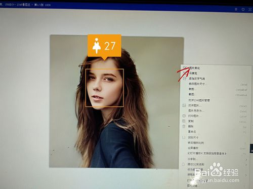 点击鼠标右键,在出来的界面中鼠标左键点击“图片美化”进入图片美化编辑界面。