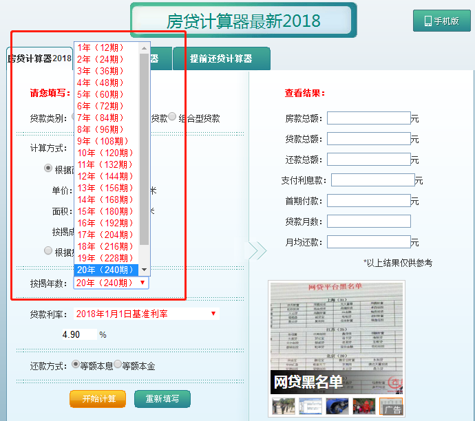 3、选择按揭年数。
