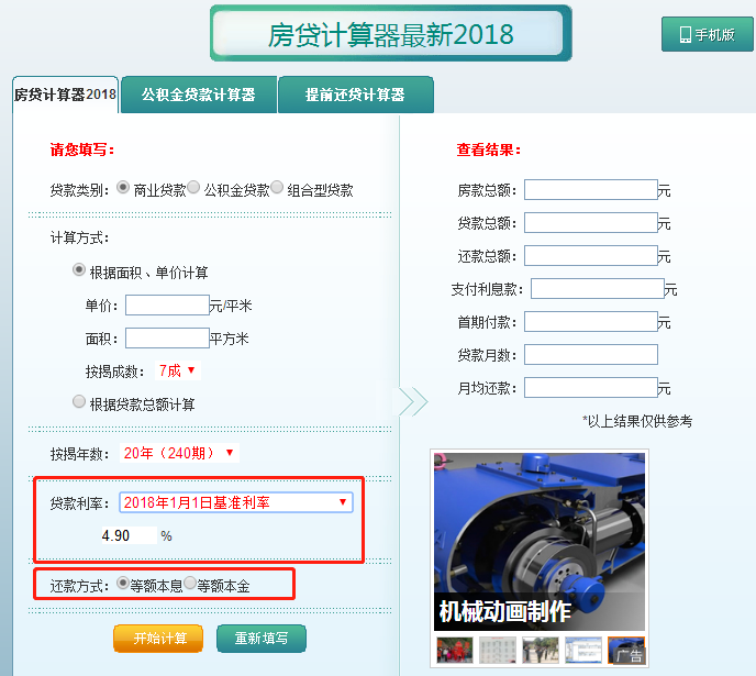 4、提供了等额本金和等额本息两种按揭贷款计算方法,计算准确,方便实用