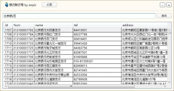 银行联行号查询工具是一款简单实用的银行联合查询系统。该软件界面简洁大方,操作方式简便,用户只需要输入银行的名称就可以自动检索银行的联行号、地址、电话、全称等信息方便用户查阅。