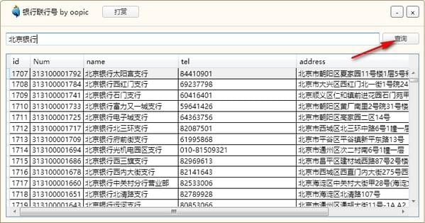 3、查询仅针对银行名,不针对地址;