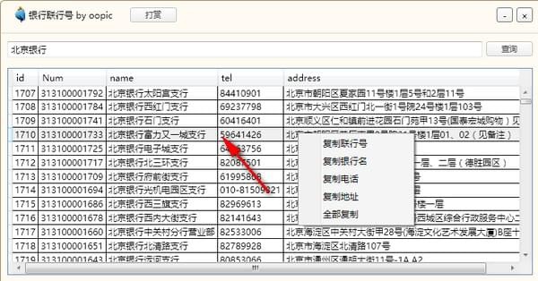 3.右键目标银行,可以复制银行信息