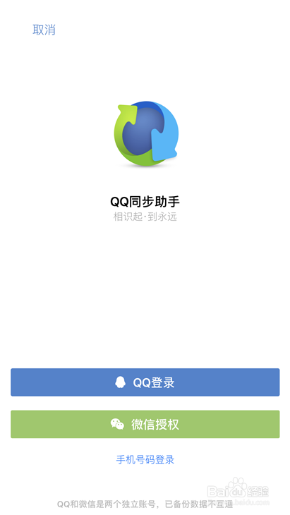 QQ同步助手怎么用?登录界面,这个用QQ登录还是微信登录是随意的,只不过你记住就好,以后你好用这个来进行恢复。