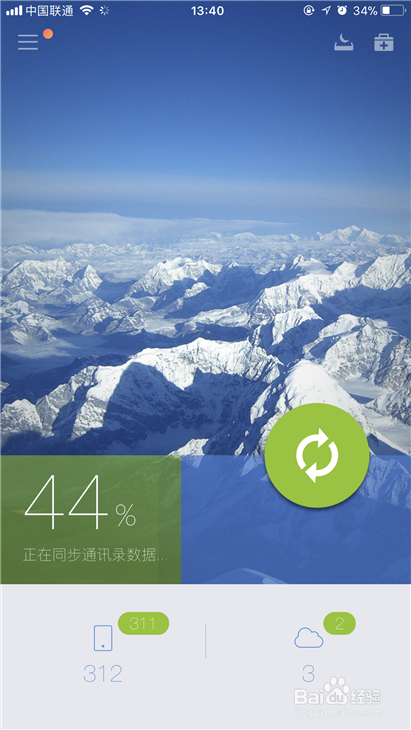 进入之后,我们可以同步云端和我们手机里的手机号码。点击那个绿色的按钮。