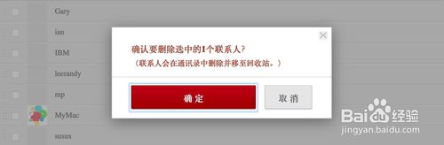接着系统会提示我们,是否要真的删除此联系人,并把它放到通讯录的“回收站”里,点击“确定”按钮即可删除。