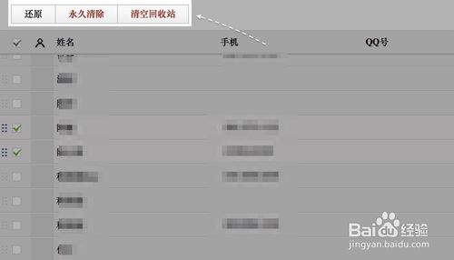 在回收站页面里,我们可以看到之前删除过的所有的联系人信息。如果想要恢复的话,选择要恢复的联系人,再点击“还原”按钮就可以了。当然你也可以选择清空回收站的联系人,永久删除联系人。