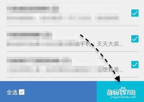 在默认情况下,会全部选择当前手机上的短信,如果你不想全部选择的话,可以手动选择想要备份的短信。好了以后请点击“备份”按钮。