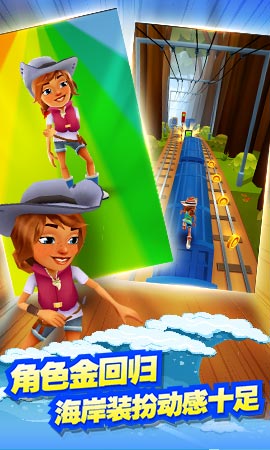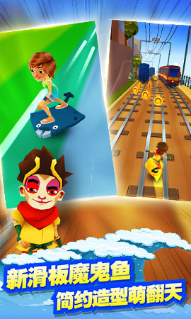 地铁跑酷是一款带有美式街头风格的跑酷游戏,游戏采用3D立体视角,在充满动感和色彩艳丽的画面中奔跑、跳跃、翻滚,每天都会即时刷新三项任务供玩家去挑战,同时还有丰富多彩的道具使用与升级,众多隐藏角色等待你来开启!躲避迎面而来的火车!帮助高级、技巧娴熟以及毫无经验的新玩家逃避性情乖戾的检查员及其斗牛犬的检查。