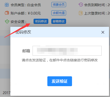 2、找到密码修改,然后点击发送验证。此时,海豚官方会给您的邮箱发送一份密码修改的地址。(如没有绑定邮箱,需先绑定邮箱后,再进行密码修改)