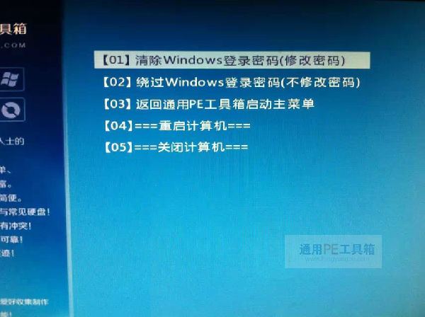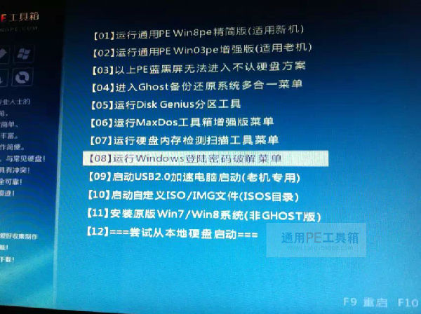 1、这时候会进入通用pe工具箱的选择界面,我们选择第八个“运行Windows登陆密码破解菜单”;