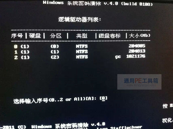 4、到了下图这一步,我们输入“0”然后回车(通常第一个是C盘,后面的久是依次排列的);