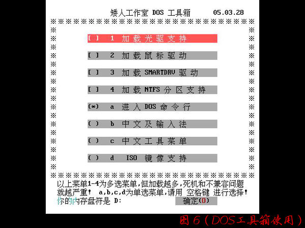6、DOS工具中去掉了加载.iso的功能……这个真的用处不太,我就没有用过。呵呵