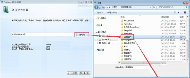 这一步我们需要确定Foxtable的安装路径,安装程序有默认的安装路径:C:\foxtable\eval\。安装Foxtable至少需要108MB的磁盘空间。需要修改路径的朋友可以点击浏览,选择需要安装的文件夹后,点击确定就可以修改安装路径了。点击下一步继续安装进程;