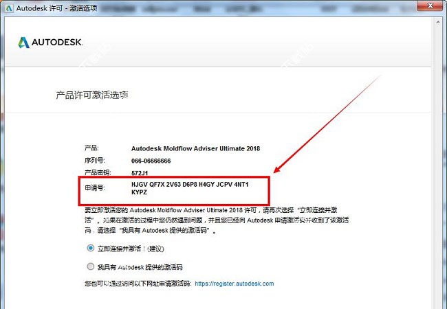 5、这次就会弹出产品许可激活选择,复制注册界面中的“申请号”,之后暂时将其放置在一边