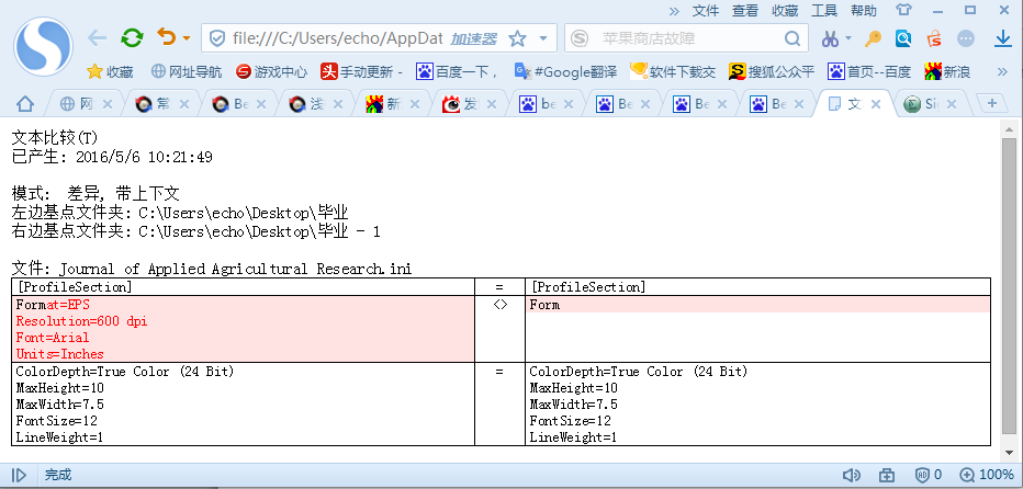 步骤四:当您在输出选择中勾选“HTML报告”时,单击界面右下角“在浏览器中查看”按钮,即可在浏览器中查看文本比较报告的详细内容,报告信息如下图图例所示。