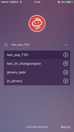 点击下拉列表可以选择其他账号,点击账号后的“删除图标”可以清楚该账号及密码。
