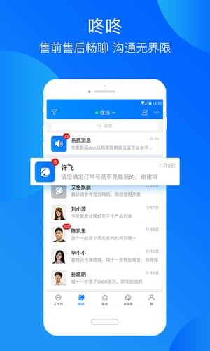 京麦:提供店铺关键信息提醒,以及商品、交易、数据、论坛等常用操作的快捷入口。消息中心:商品信息、订单信息、官方公告等,第一时间推送到手机。