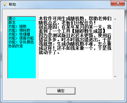 1.3 随机数字生成器修复1.2的重大错误,增加内嵌帮助。一次可抽取的数增加至五个。重写配置模块。保证每次抽取的数不重复。