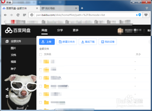打开浏览器,进入百度网盘官网,并且登录到自己的百度网盘主页,如下图所示;