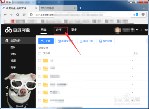 首先登录你的百度云,需要进行分享的资源所在的百度云。点击分享,进行分享界面。