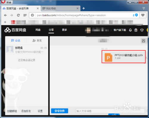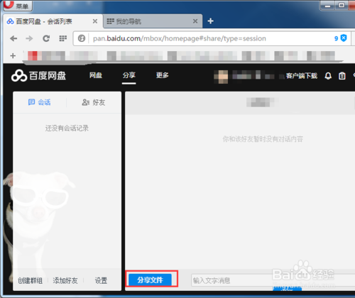 会跳出来一个对话界面,如图中所示,接着选中“分享文件”;